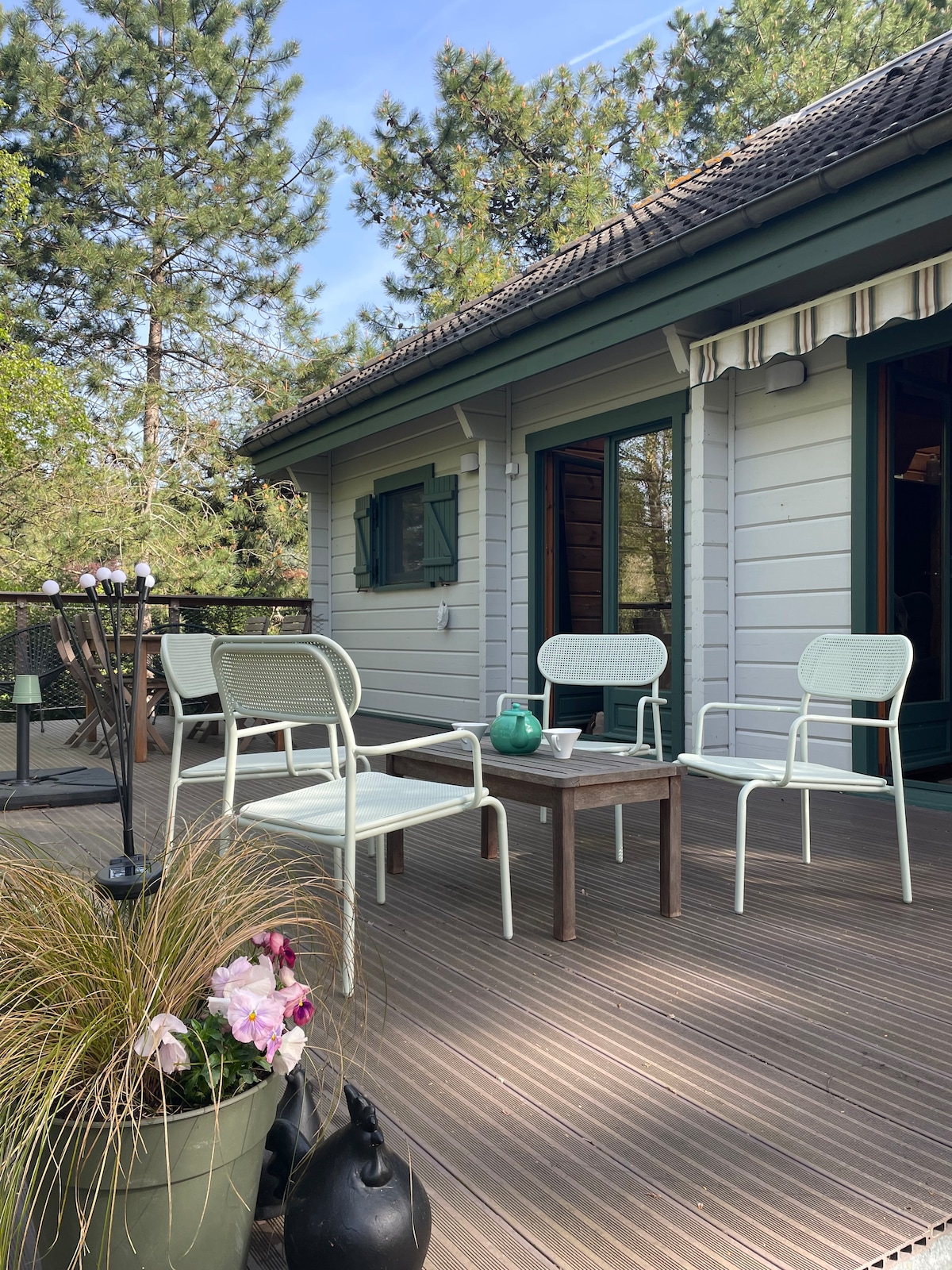 A prop del Golf des Dunes, "Le Pin", la nova T5 amb un marc de fusta de 110 m2, ofereix una estada relaxant per a famílies o amics. Equipat amb totes les comoditats modernes (bomba de calor reversible, wifi, cuina equipada, rentadora, 160*200 llits queen als 4 dormitoris i cuina equipada) "Le Pin" forma part del seu entorn obrint al sud a una terrassa privada equipada i a un jardí ple d'arbres. A 10 minuts en bicicleta, la platja et enlluernarà amb la seva immensitat i la varietat dels seus colors