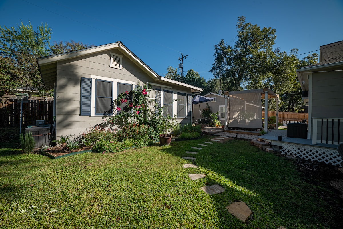 Enjoy this hidden gem in New Braunfels. This 392 sq ft 1 bedroom, 1 bathroom house has it's own full kitchen with washer/dryer. The bedroom has a queen bed and there is a pull out couch in the living room (pull out mattress was replaced in July 2024). The house is fenced off so you have your own private oasis! You'll be able to BBQ on those nice Texas nights too!