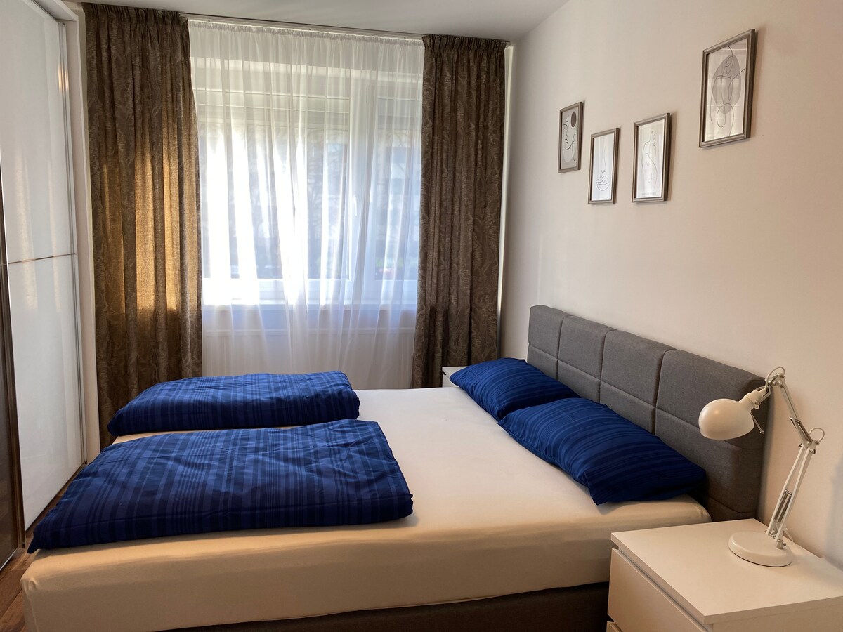 Aquest apartament lluminós i modernament moblat de 50m ² es troba al encantador districte d'Urfahr, a només 15–20 minuts a peu de la plaça principal. A prop trobaràs el Lentia Center, cafeteries, restaurants i el carril bici del Danubi. El pis ofereix: • Acollidora sala d'estar amb sofà i taula de menjador • Bany amb banyera i dutxa amb pluja • Una cuina americana ben equipada • Dormitoris : Llit 180 200 + armari • Escriptori Perfecte per a parelles, viatgers sols o treballadors a distància