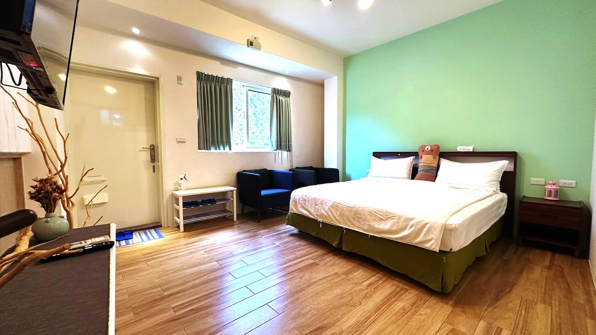 Tenim un total d'una habitació amb bany i una gran terrassa. Una habitació pot allotjar de 2 a 4 persones, incloent-hi l'esmorzar, envoltada d'un bon moment en l'entorn forestal de Fendo Precision i la vista.A prop de la Universitat de Yilan i el parc esportiu.