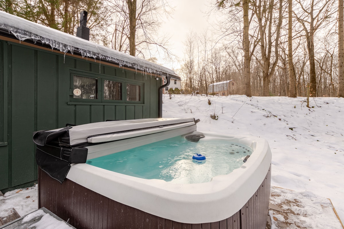 Caseta de fusta acollidora a Kinsman amb banyera d'hidromassatge - Pymatuning
