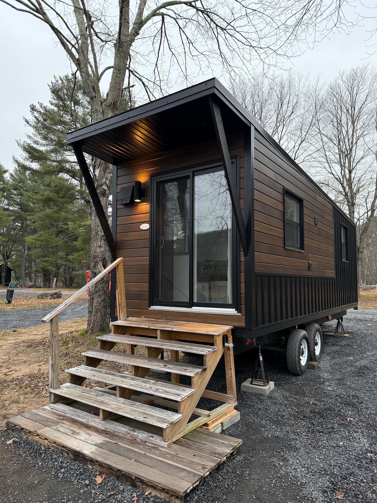 Modern farmhouse tiny home on the Delaware River with stunning views spanning 1 mile in either direction of the mighty Delaware and bald eagles. This 4 season tiny home features AC and heat with a dinette in the kitchen for 4 that can be turned into a bed for two children or one adult. Refrigerator, oven, and microwave round out this kitchen. The bathroom includes a flush toilet, sink, and shower. The bedroom has a queen size memory foam mattress and big windows to hear the rushing water.