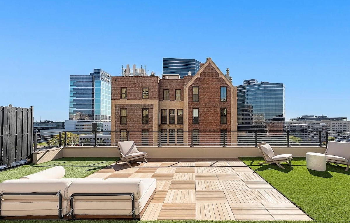 Luxe 1br~Rooftop View, Free Parking, King Bed~Gym
