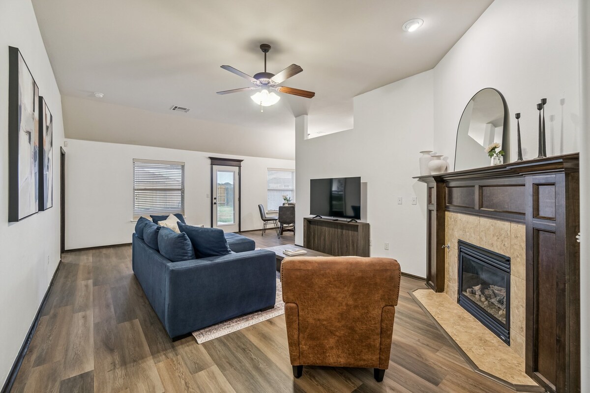 Kick back and relax in this newly remodeled, stylish home. Home has large, new kitchen and it’s well stocked for you! Our home has 2 of 3 bedrooms accessible to guests and we live nearby should you need us. Garage and storm shelter are available for you as well.
