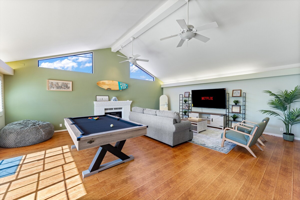 Make the most of your OC getaway, family-friendly, and spacious (2550 sq2) home near Disneyland and Laguna Beach. After big days out, come “home” to your resort-style backyard: swim in the private pool, unwind in the app-controlled spa, and grill at the outdoor kitchen/bar+TV while the kids play. Inside, spread out with a game room (pool table + arcade) and a well-stocked kitchen. Little-traveler perks: pack-n-play & high chair. Quiet, convenient neighborhood near groceries/restaurants..