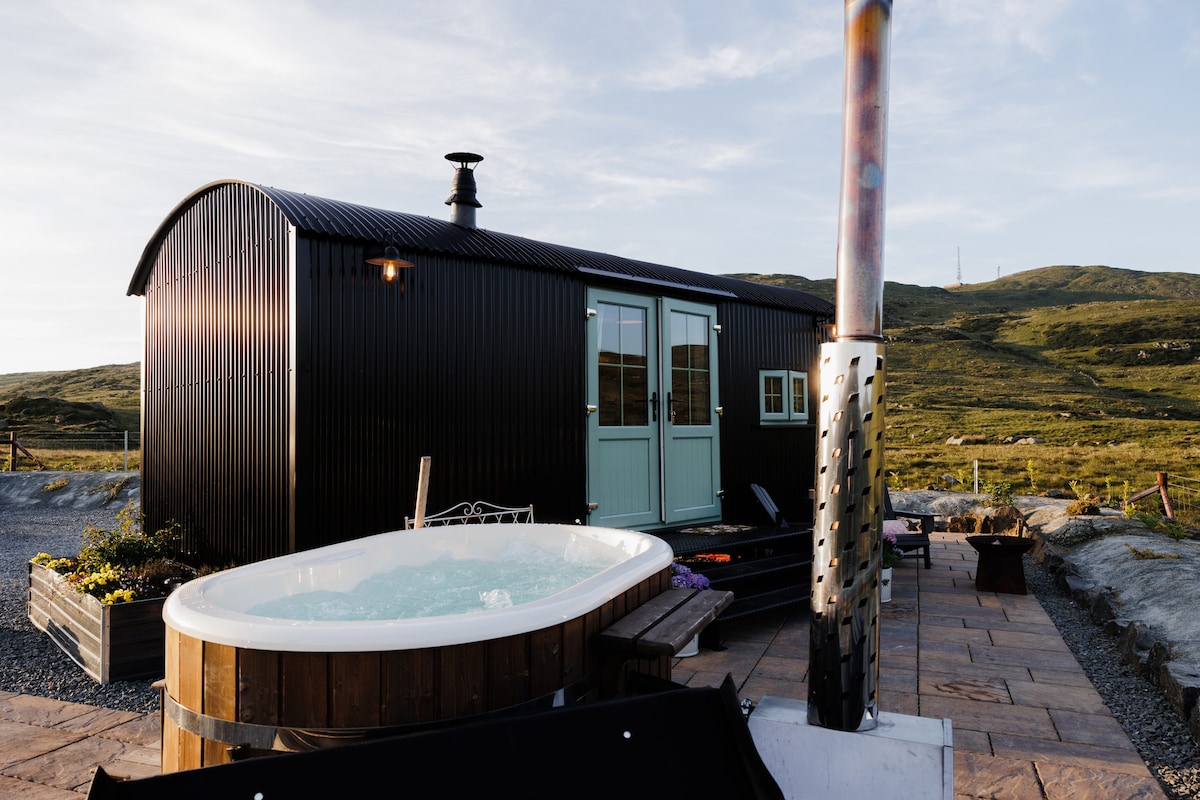 Al capdamunt dels arbres mentre mires els turons coberts de Heather, els camps de pedra i les sinuoses carreteres estretes. Respira profundament, relaxa't i torna a connectar amb la natura. Un complex turístic únic artesanal, amb un aspecte rústic natural amb una connectivitat moderna completa. S'accedeix a través d'un pont de corda privat, una banyera d'hidromassatge, una xarxa/hamaca a l'aire lliure, una dutxa a l'aire lliure construïda per a dos i un llit super king amb sostre de vidre per contemplar les estrelles. Tot totalment controlat per ordres de veu.