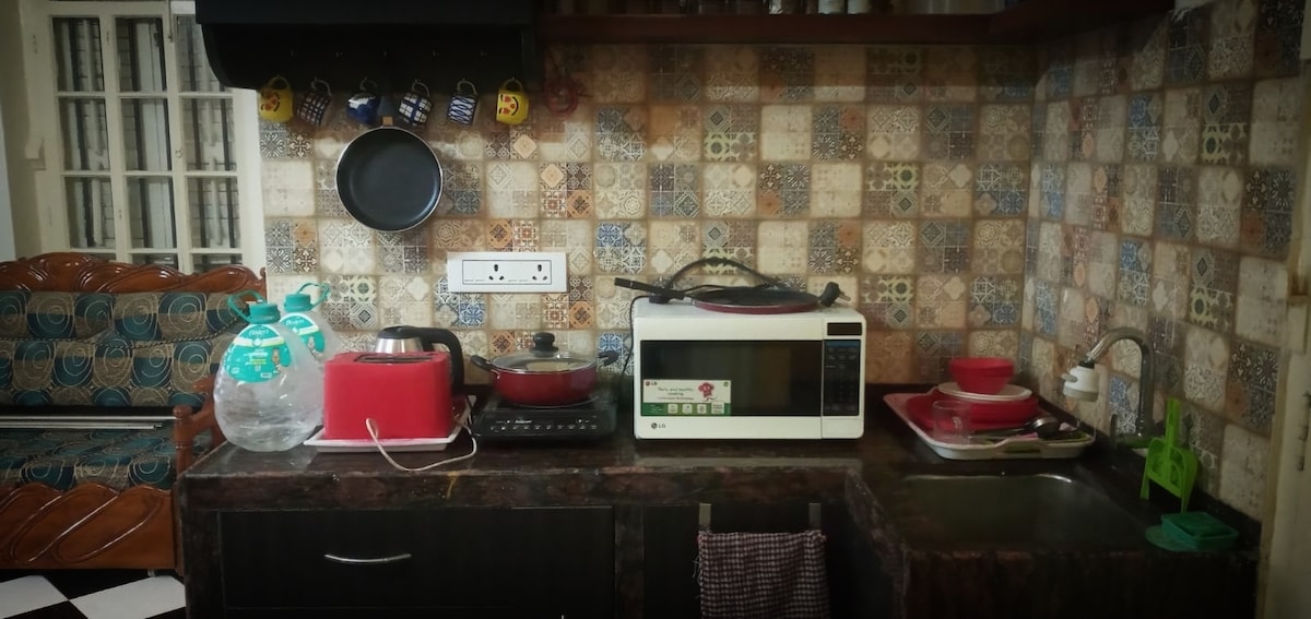Situat al cor del centre de Calcuta (a prop de l'hospital GD), aquest lloc es troba a pocs minuts del nou mercat, el carrer del parc i l'esplanada (Dharmatalla). Tant si ets turista com si ets un home de negocis, aquesta ubicació s'adaptarà a tots, ja que aquest lloc està a prop de la majoria de destinacions turístiques i centres comercials i de negocis i està ben connectat amb transport públic més ola/UBER. L'allotjament, acabat de renovar i net com una patena, té 350 peus quadrats i ofereix una cuina modular totalment equipada, wifi i PRIVACITAT.