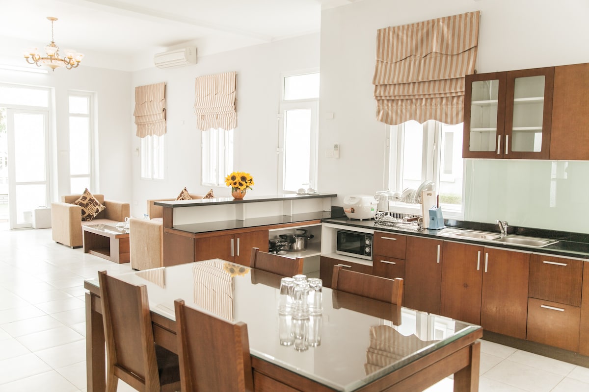 Relaxa't amb tota la família en aquest allotjament tranquil. A un quilòmetre de la platja, situada just al costat de la carretera nacional, a poc més de 100 metres del mercat amb Winmart i el mercat local. Allotja't a prop de molts restaurants de marisc deliciosos, o pots demanar articles preparats per gaudir o anar al port marítim per comprar productes frescos per cuinar junts.