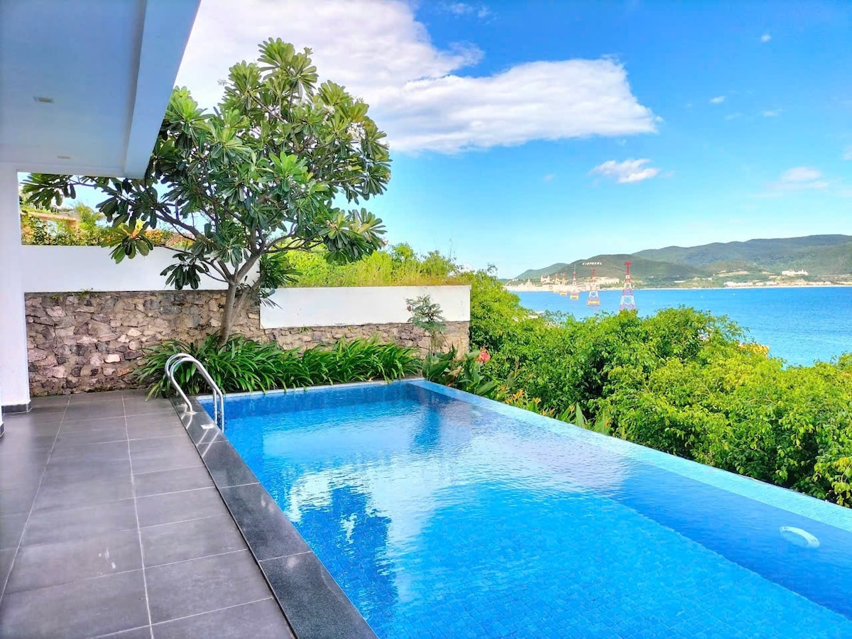 Infinity Pool Villa Relax and beautify yourself at Garden House Nha Trang. This entire villa is right next to the beach, just a few steps from Hon Chong Beach - Nha Trang. - Spacious 500m2 villa, parking available in the yard. - Garden BBQ area - 4 bedrooms, 6 beds, 5 toilets, 4 air conditioners, washing machine, TV, refrigerator... - Spacious kitchen fully equipped with cooking utensils, BBQ facilities, and a clean drinking water filtration system. - Large rooftop with beautiful vi