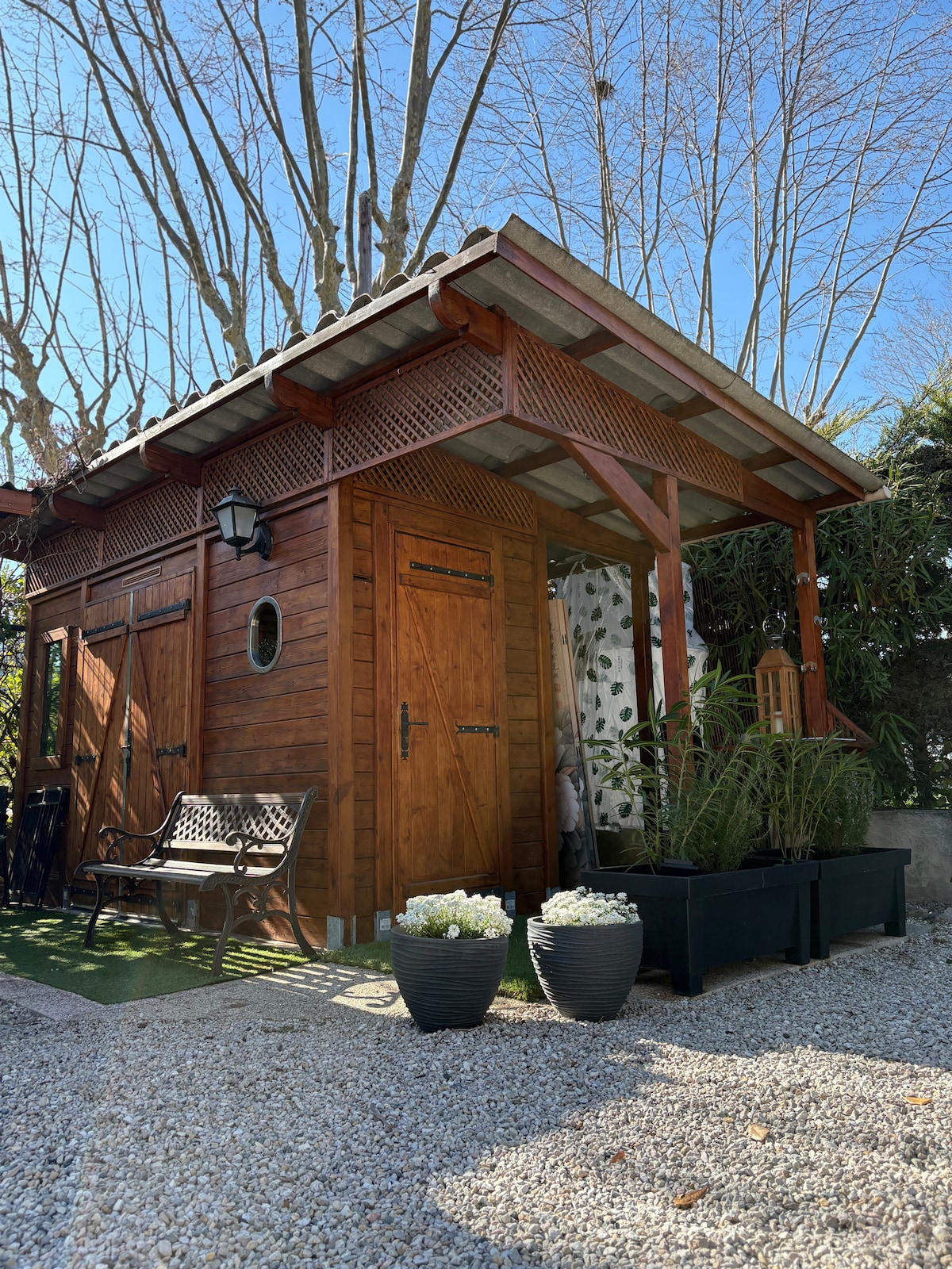 Saló: una experiència única en un xalet a prop de Cannes 🌿 Descobreix una estada inoblidable al nostre xalet únic d'estil western, envoltat de natura al bell sud de França. A només 20 minuts de Cannes, la ciutat que acull l'inoblidable «Festival de Cinema Western de Cannes» 🤠 Envoltat d'arbres i dels sons suaus de la natura, el xalet ofereix un ambient càlid i íntim. Vine a gaudir de l'encant, la comoditat i la natura: una estada que recordaràs molt després de marxar.