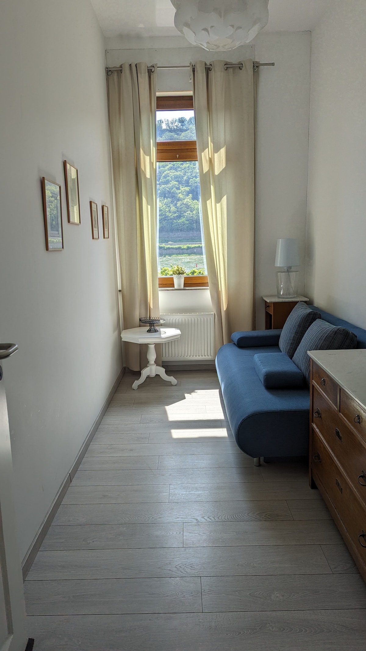 Herzlich Willkommen am Fuße der Loreley, direkt am Rhein! Siebzig Quadratmeter zum Wohlfühlen, Entspannen und Genießen! In einem Haus von 1900 wurde diese Wohnung neu renoviert, sowie liebevoll und modern eingerichtet. Über den angrenzenden Balkon besteht ein direkter Blick auf den Rhein, die Burg Maus und die Burg Rheinfels. Die Küche, sowie das Bad und Gäste-WC sind voll ausgestattet. Im Wohnzimmer befindet sich neben einer Schlafcouch auch ein Smart-TV.