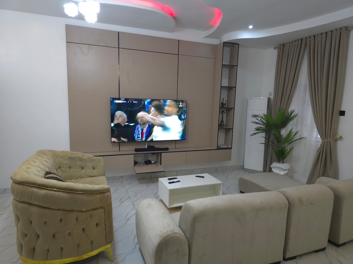 Gaudeix de la privacitat en el nostre dúplex de 4 dormitoris elegantment moblats, perfecte per a la relaxació o els negocis. La nostra casa ofereix energia 24/7, internet 5G, servei de neteja, seguretat, televisors intel·ligents, DSTV, PlayStation 5, billar i tennis de taula. Cada dormitori amb bany privat ofereix privacitat, mentre que la cuina totalment equipada, l'aparcament i l'entrada intel·ligent afegeixen comoditat. El nostre allotjament és ideal per a professionals, famílies i aquells que valoren la privacitat i el disseny modern.