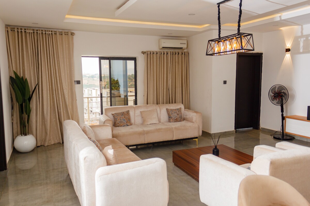 Experience luxury in the heart of Abuja!. Unwind in our stunning 2 bedroom apartment, in a serene and secured estate, Enjoy seamless connectivity with fast Wi-Fi. Cozy nights awaits you in our queen sized beds. Entertain yourself with 58 inches smart TV streaming Netflix and fully equipped kitchen for your home cooked meals. Our haven is ideal for getaway, family vacations and group trips. It offers the perfect blend of comfort with great nearby attractions. Your home away from home.
