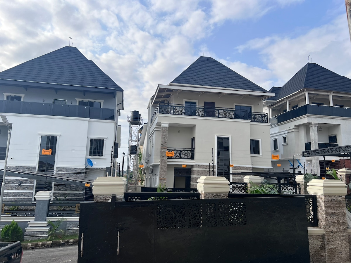 Gaudeix de la privacitat en el nostre dúplex de 4 dormitoris elegantment moblats, perfecte per a la relaxació o els negocis. La nostra casa ofereix energia 24/7, internet 5G, servei de neteja, seguretat, televisors intel·ligents, DSTV, PlayStation 5, billar i tennis de taula. Cada dormitori amb bany privat ofereix privacitat, mentre que la cuina totalment equipada, l'aparcament i l'entrada intel·ligent afegeixen comoditat. El nostre allotjament és ideal per a professionals, famílies i aquells que valoren la privacitat i el disseny modern.