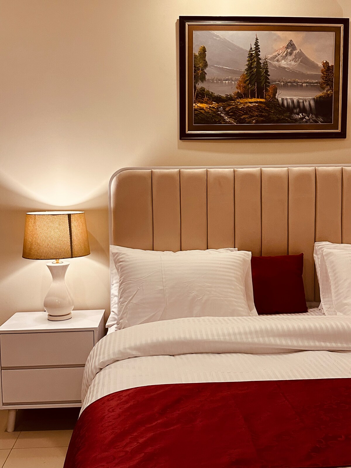 Welcome to The Scarlet Haven A chic 1-bedroom stay in the heart of Park View City — perfect for solo travelers, couples, or business guests. Enjoy your stay with: - Stunning balcony views of Park View’s dancing fountains - Fully equipped kitchen - High-speed WiFi - 60” Smart HDTV (Netflix + YouTube) - Heater & AC for year round comfort (1 AC only) - 24/7 elevator access - Peaceful, secure area surrounded by hills - Free on-site parking - 24/7 surveillance More than a stay — it’s your Basera.
