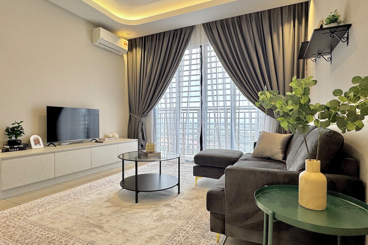 L'apartament de 2 dormitoris equipat amb 3 aires condicionats, internet d'alta velocitat i l'últim és un purificador d'aigua ideal per allotjar 4 hostes. Entorn tranquil de planta alta, amb piscina i gimnàs. Situat a prop de l'aeroport de KLIA, Malàisia. Gaudeix d'una estada sense estrès amb accés independent les 24 hores, situat a només 15 minuts de la T1 o de l'aeroport internacional T2. Tant si tens una sortida a primera hora del matí com si arribes tard, estalvia temps i relaxa't abans del vol. Grab està disponible les 24 hores