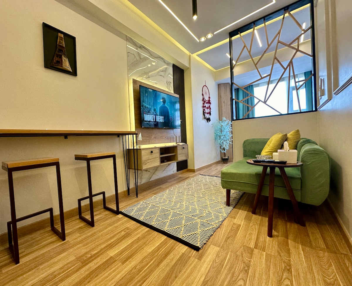 Aquest apartament espaiós està totalment moblat i equipat amb tot el que necessites per gaudir d'una estada còmoda. Relaxa't i mira les teves pel·lícules i programes de televisió preferits al sistema de so amb accés a Netflix, beIN Sports, Shahid, Watch it i Starzplay. Situat en una ubicació cèntrica, a prop de les principals atraccions. A poca distància a peu de l'estació d'autobusos, les botigues i els restaurants. Tant si viatges per negocis com per plaer, aquest apartament modern i elegant és el lloc perfecte per allotjar-te.
