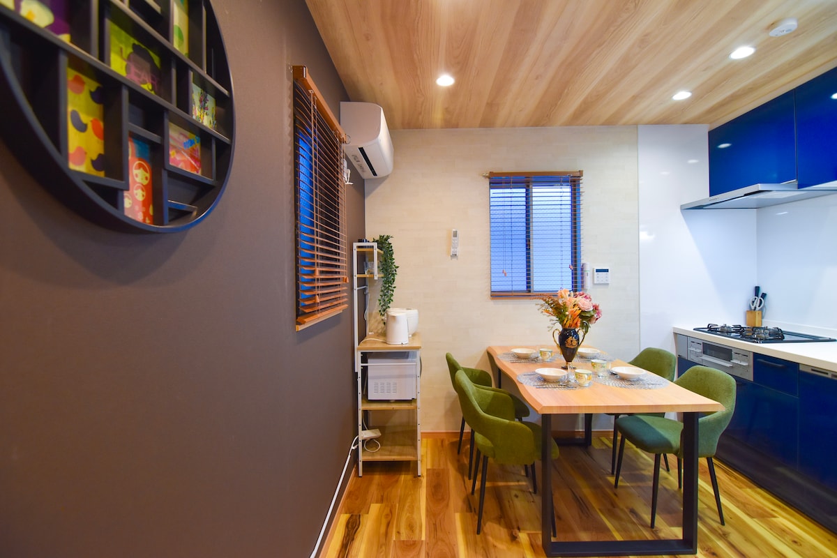 La casa és una petita casa privada, així que crec que pots gaudir-la amb molt de temps per a 4 adults.Allotja't en aquest espai encantador. ★Tingues en compte★ que parlarem i cantarem fins a les 22:00. En lloc d'això, pots parlar sense preocupar-te pel so fins ben entrada la nit.Hi havia un espai curatiu just al costat de l'estació de metro Hanazonocho.És una casa que combina cura i amabilitat respectant la cultura japonesa.El primer pis és accessible, cosa que fa que sigui més fàcil per a aquells que estan preocupats per les cadires de rodes i els peus.Et preguem que et cansis i gaudeix de les visites turístiques en un espai amb bells grans de fusta.També està a prop de destinacions turístiques i el transport també és còmode.L'entrada de l'estació està a 1 minut a peu.Els supermercats, les botigues i els restaurants també estan a prop i són molt còmodes.La casa es troba en un camí lleugerament petit des de la carretera gran i és un lloc tranquil per sentir-se com viure al Japó.És tranquil a última hora de la nit, però tingues en compte que hi haurà una veu i una veu cantada i cantada fins a les 22:00.En lloc d'això, no tindràs problemes per menjar fora i podràs gaudir de la vida normal al Japó.Està a 2 parades de Namba, per la qual cosa és fàcil anar a Nara, Kyoto i Wakayama.També és còmode en tren des de Kansai.