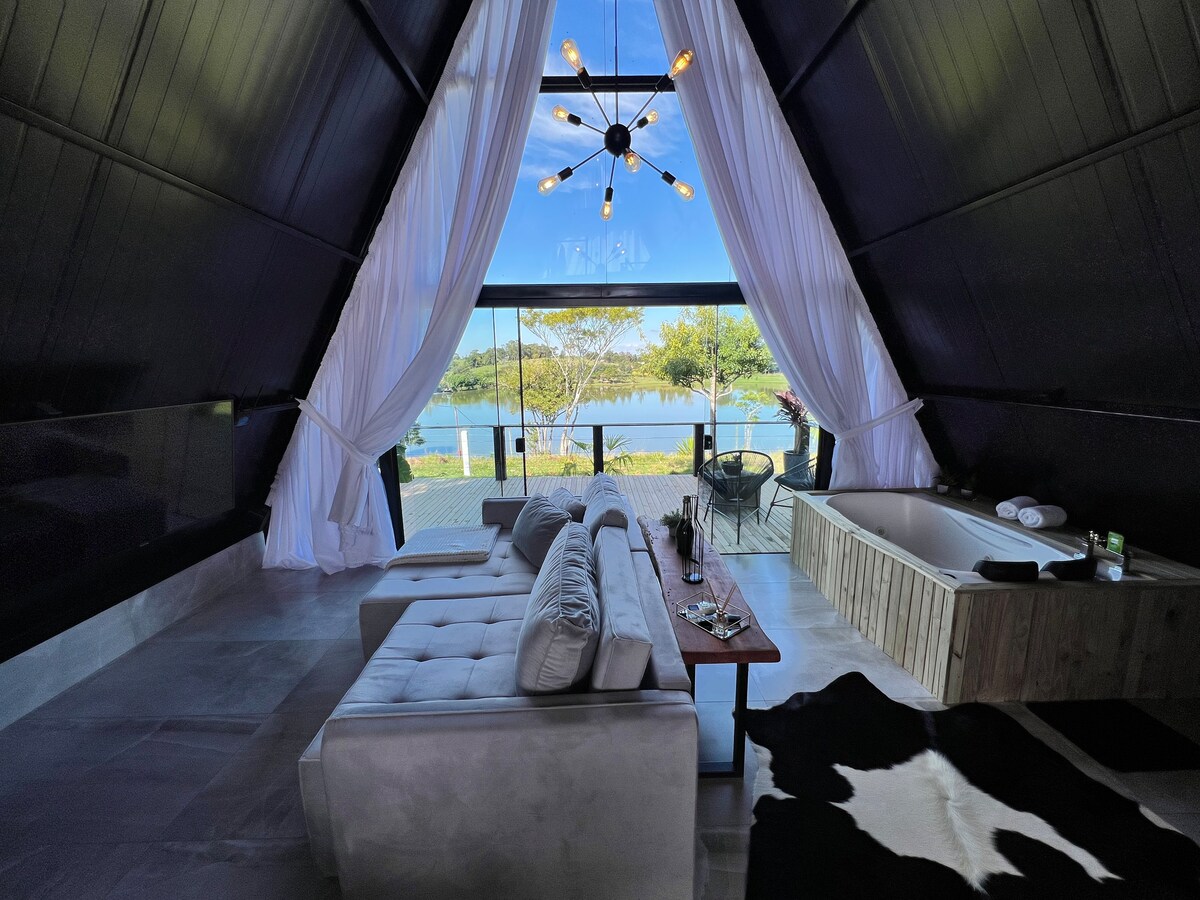 💫 Cabana Omega: refugi d'amor en plena natura A 14 km del centre de Chapecó, un lloc on el temps s'alenteix, el so de la natura convida a la comoditat. ❤️ Què fa que l'experiència sigui única? Dues llars de foc Il·luminació automàtica Bany de vidre Barbacoa Accés exclusiu al riu i a la llacuna Llençols de llit, taula i bany inclosos Esmorzar inclòs Tant si és per celebrar l'amor, renovar l'energia o simplement tornar a connectar amb l'essencial, l'Omega Hut és la destinació perfecta!