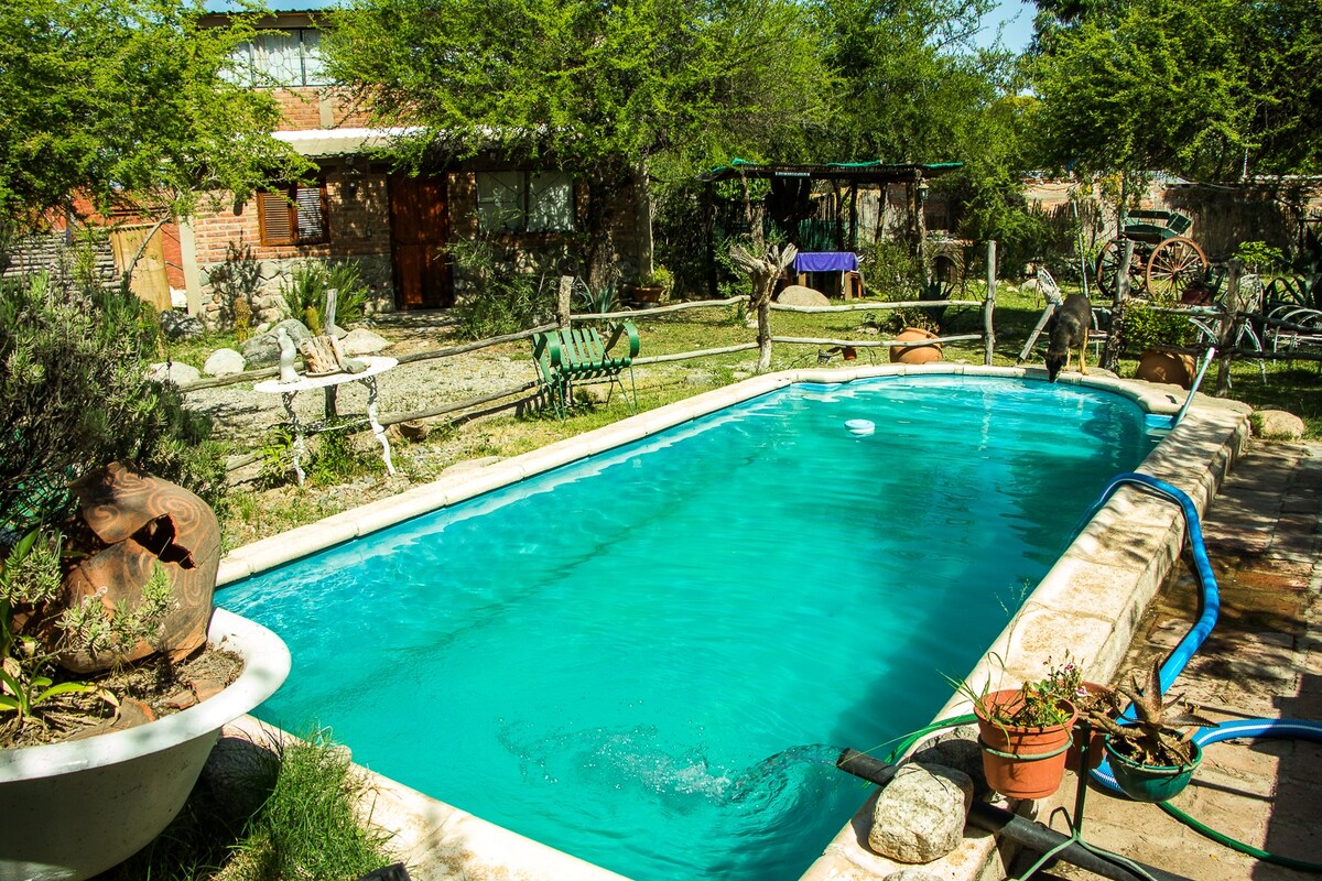 Relaxa't amb tota la família en aquest lloc on s'respira la tranquil·litat. Gaudeix de la natura pujant al mirador de la vall i visitant El Zaguán (la cascada del rierol), a només 150 metres de distància. La casa de muntanya es troba a La Cuesta de Miranda- Ruta 40 km 3,819- La Rioja- Argentina. A 100 quilòmetres del Parc Nacional de Talampaya (pots visitar el parc Valle Luna el dia 90 quilòmetres). I a 250 quilòmetres de Laguna Brava a la Cordillera dels Andes.