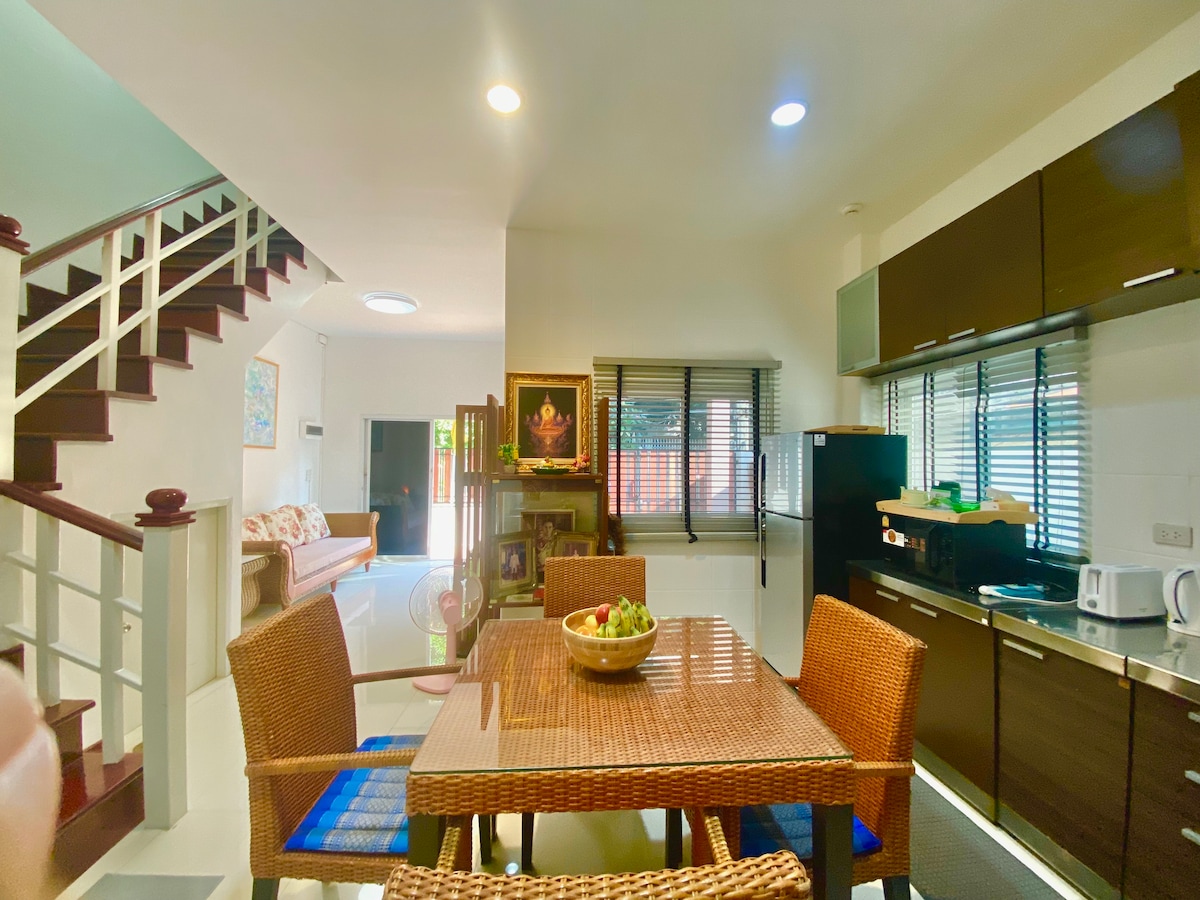 Com a regal de benvinguda, oferim als nostres hostes un servei de trasllat gratuït a l'aeroport per fer el viatge una mica més fàcil. Humble Abode és un allotjament acollidor al cor de Bangkok, amagat darrere del Jim Thompson Art Center, ideal per a famílies i amics. Entra-hi i trobaràs un espai tranquil per reunir-vos, descansar i gaudir de petits moments de felicitat junts. Tant si ets aquí per explorar la ciutat com si simplement vols relaxar-te, esperem que el nostre allotjament et doni un lloc suau per aterrar.