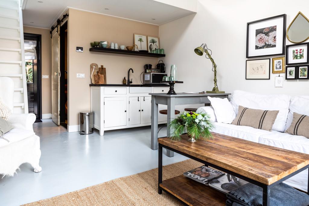 "Onder de Iep" té una sala d'estar acollidora amb portes que donen a una terrassa privada. Hi ha una petita cuina completa. El dormitori té un llit (boxspring) de 160 cm d'amplada amb un matalàs doble i dos edredons separats. Hi ha un lavabo, dutxa i un vàter separat. A la bugaderia hi ha una safata d'assecat i una nevera amb begudes a preu de cost. Les bicicletes es poden aparcar tancades, amb opció de càrrega.