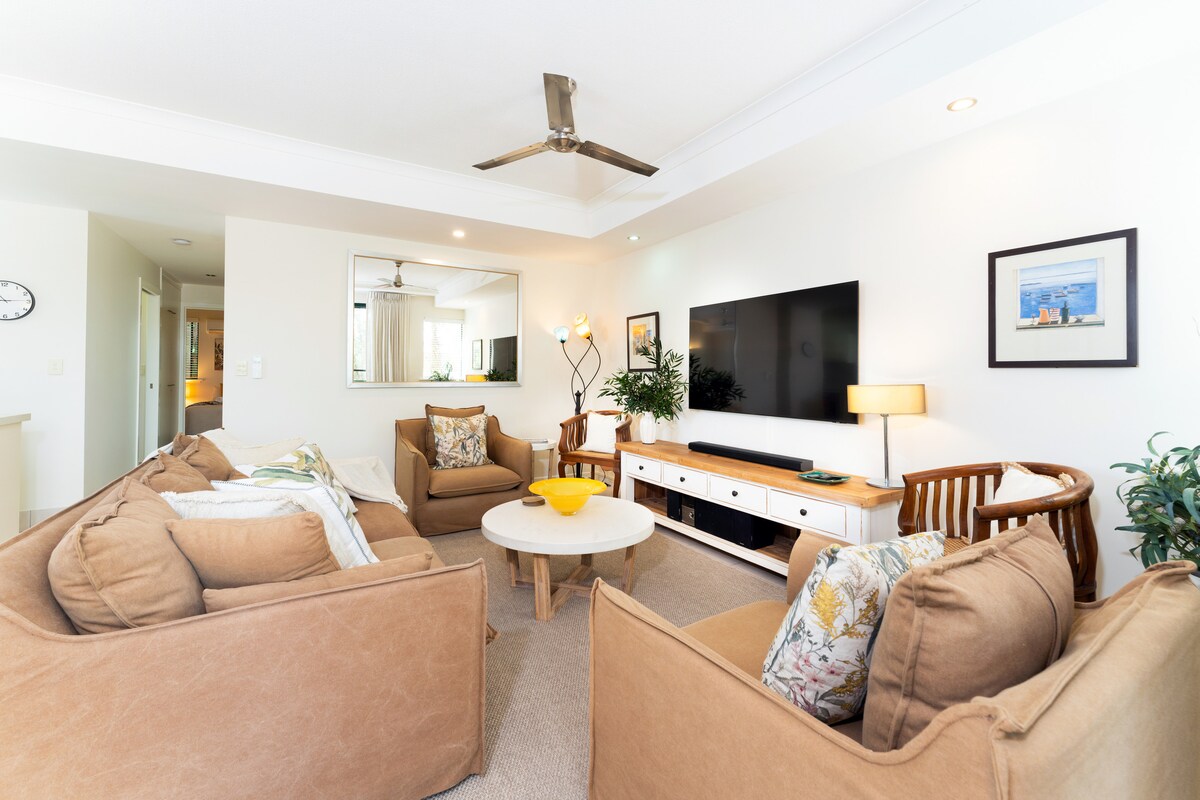 Kokonut Villa és la teva escapada relaxada a la costa al cor de Noosaville. Aquesta elegant vil·la de 2 dormitoris ofereix aire condicionat, wifi, cuina completa, barbacoa, pista de tennis i piscina d'estil resort. Camina fins al riu Noosa, a les cafeteries i a les botigues, o fes un viatge curt fins al carrer Hastings i a la platja principal. Perfecte per a parelles, famílies o amics que busquen comoditat, conveniència i un ambient tropical.