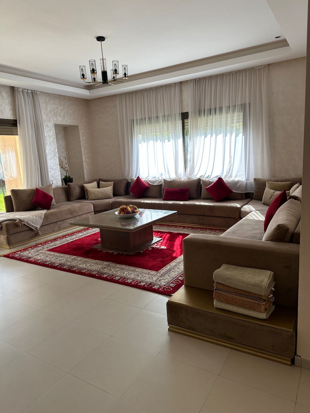 A només 10 minuts del centre de Marràqueix, la Villa LEANA es troba a l'Argan Golf Resort, privat i segur, amb unes vistes esplèndides de les muntanyes de l'Atles. Aquesta moderna vil·la, acabada el març de 2023, t'ofereix les comoditats d'un mobiliari nou. La seva elegant arquitectura i la seva cuidada decoració la converteixen en un lloc ideal per reunir-se en família i gaudir d'unes vacances relaxants, en un entorn de luxe. Piscina climatitzada (suplement de 250 Dhs/dia).