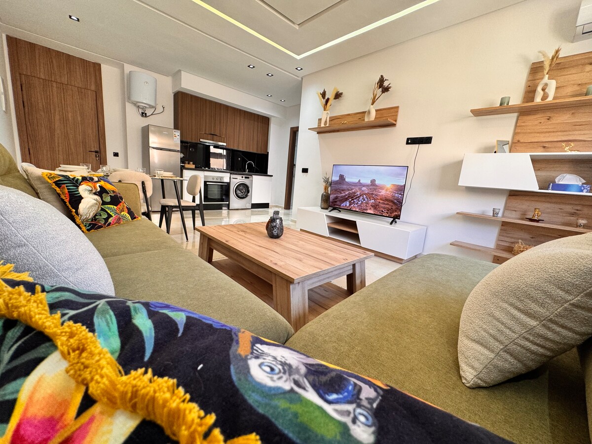 Pis còmode i còmode, amb una ubicació ideal a uns passos de l'entrada a l'aeroport de Marràqueix. Perfecte per a una estada de vacances, hostes en trànsit, estades de feina o sortides a primera hora del matí, aquest allotjament ofereix tot el que necessites per gaudir d'una estada agradable. Gaudeix d'un espai net i ben equipat, equipat amb televisor intel·ligent i wifi d'alta velocitat. A prop dels serveis i del transport, aquest pis és la teva base perfecta a Marràqueix.