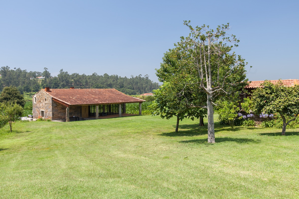 Un antic graner transformat en un estudi acollidor i còmode amb una cuina totalment equipada, sala d'estar, llit doble i llit supletori infantil. L'espai exterior està ple de llits de flors, en una extensió de 2000 m2. La zona de jardí privada d'aquesta casa té 100 m2 amb llocs assolellats i d'ombra i mobles de jardí. A 3 km es troba la Caminha amb terrasses i restaurants, coneguda per la seva bellesa natural i gastronomia local. Platges precioses, rius, aigua i muntanyes per explorar.