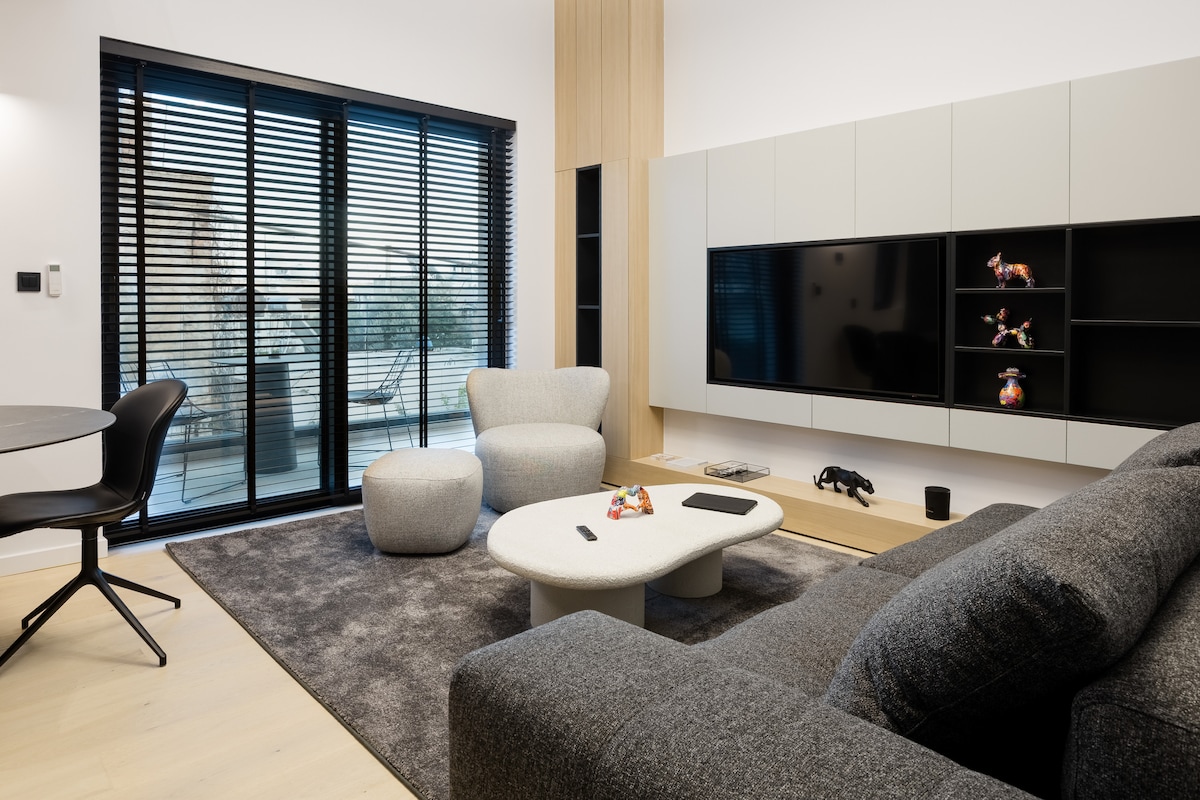Apartment G03 is a ground floor 41sq.m cosy retreat at Kalvokoresi 16 I Premium Apartments, offering uncompromized quality and comfort. It features 1 king size bedroom, living room with open fully equipped kitchen and a sofa bed, an elegant bathroom, washing machine, 1 flat TV 55” and exclusive use of a 16sq.m veranda/garden. It hosts max 3 people (2 adults, 1 child up to 14 years old), plus an infant up to 2 years old at no extra charge. Services include Daily Housekeeping and 24/7 support.