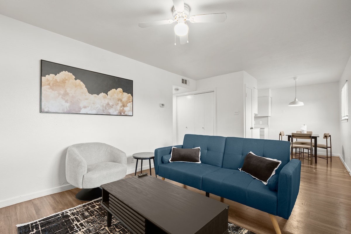 Gaudeix d'una estada en aquest espai allotjament, situat al nord d'Austin, a prop de Domain i Q2. Tant si viatges per negocis com si vols explorar Austin, aquest allotjament t'ofereix la comoditat i el confort que necessites. Sala d'estar oberta amb llum natural, cuina elegant amb electrodomèstics moderns, wifi d'alta velocitat, televisor intel·ligent i espai de treball per treballar a distància. A 3 minuts de Domain, a 5 minuts de l'estadi Q2, accés fàcil a l'autopista 1 i 183 per a conduccions ràpides al centre de la ciutat (15 minuts) A prop de les principals empreses tecnològiques, cafeteries i cerveseries locals.