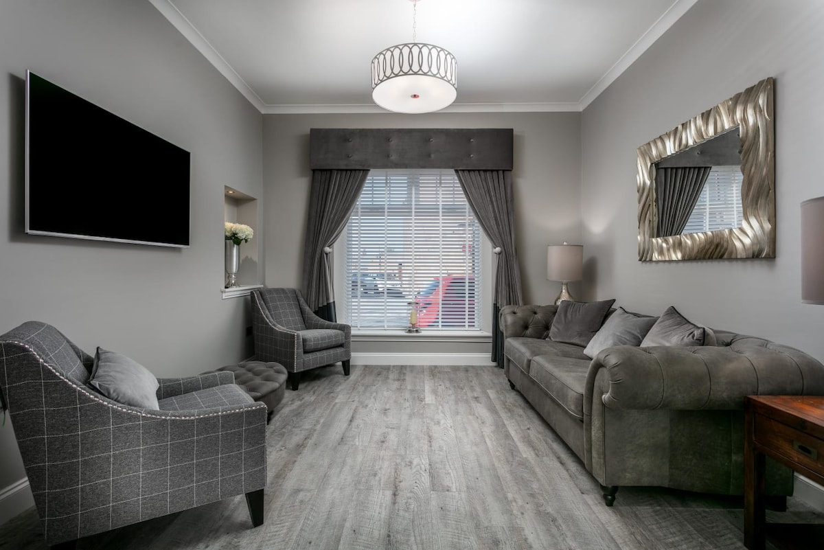 Tranquil·la't en aquesta escapada única i tranquil·la. Situat en una granja rural de Renfrewshire, South Barlogan Farm. Gaudeix de les precioses vistes des de la banyera d'hidromassatge privada i la zona d'estar exterior amb foguera i barbacoa i mira les estrelles des de la banyera d'hidromassatge a la nit! El Hen Hoose té tot el que necessites per a una estada relaxant. Wifi, televisor intel·ligent, fogons, nevera/congelador, microones/forn combinat, freidora d'aire, dutxa elèctrica, radiadors elèctrics, llençols i tovalloles. Barnussos de cortesia... i pau i tranquil·litat!