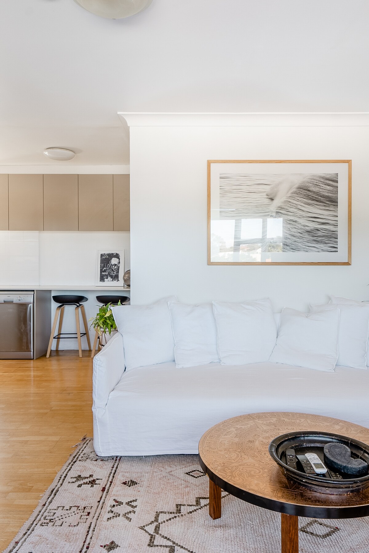 Situat al cor de Bondi 's Village, a només una manzana de la platja. Aquest apartament boutique d'un dormitori es troba en un edifici de seguretat i disposa d'un disseny únic de dos nivells, amb terra de fusta rentada que s'estén a una zona de terrassa ordenada. La sala d'estar/menjador de planta oberta inclou una zona d'escriptori. La elegant cuina d'acer blanc/inoxidable està ben equipada . A dalt de les escales hi ha un espaiós dormitori principal amb bates. La combinació de rentadora/assecadora també està inclosa per a la comoditat dels hostes