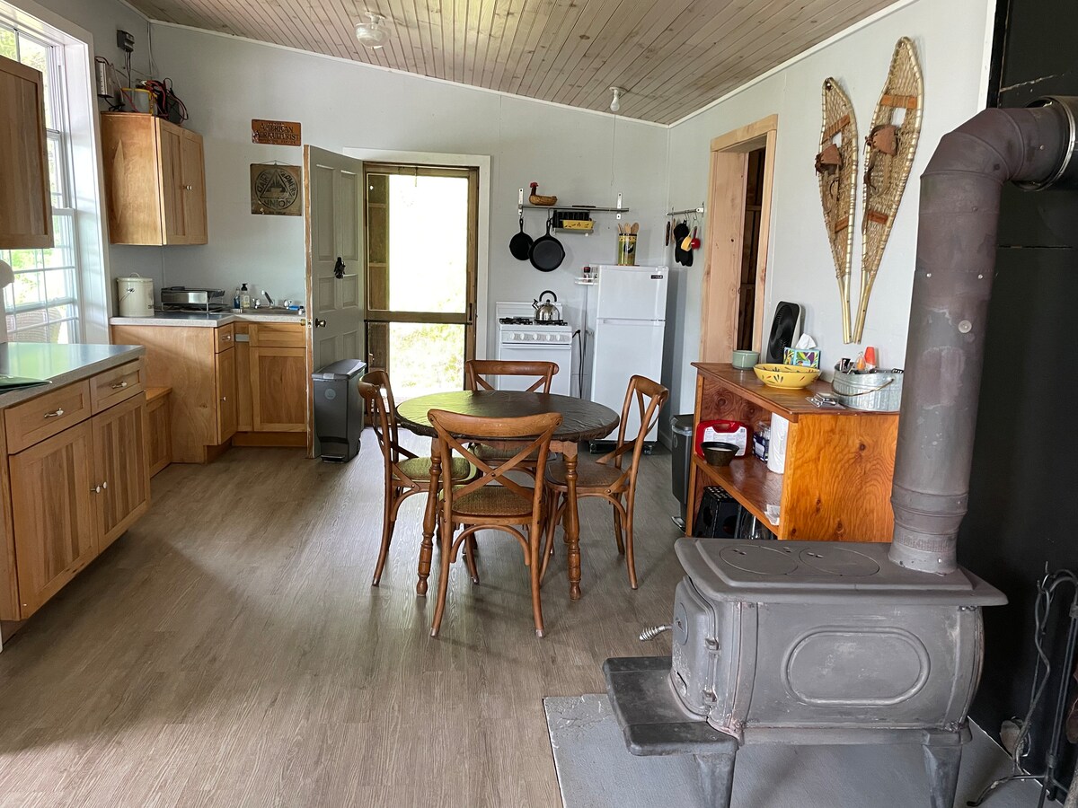 La caseta es troba en un camí de terra a la nostra granja amb un bonic estany i una vista increïble. Aquesta caseta autònoma té dos llits «queen» (amb llençols de cotó 100 %), una minicocina amb una cuina de gas d'encesa per bateria, un frigorífic que funciona amb energia solar, llums solars, una estufa de llenya, una dutxa a l'aire lliure, un fogar i un vàter antic. Un gran porxo i un moll ofereixen una vida còmoda a l'aire lliure. Un dels llocs preferits de temporada, la caseta està disponible de maig a octubre.