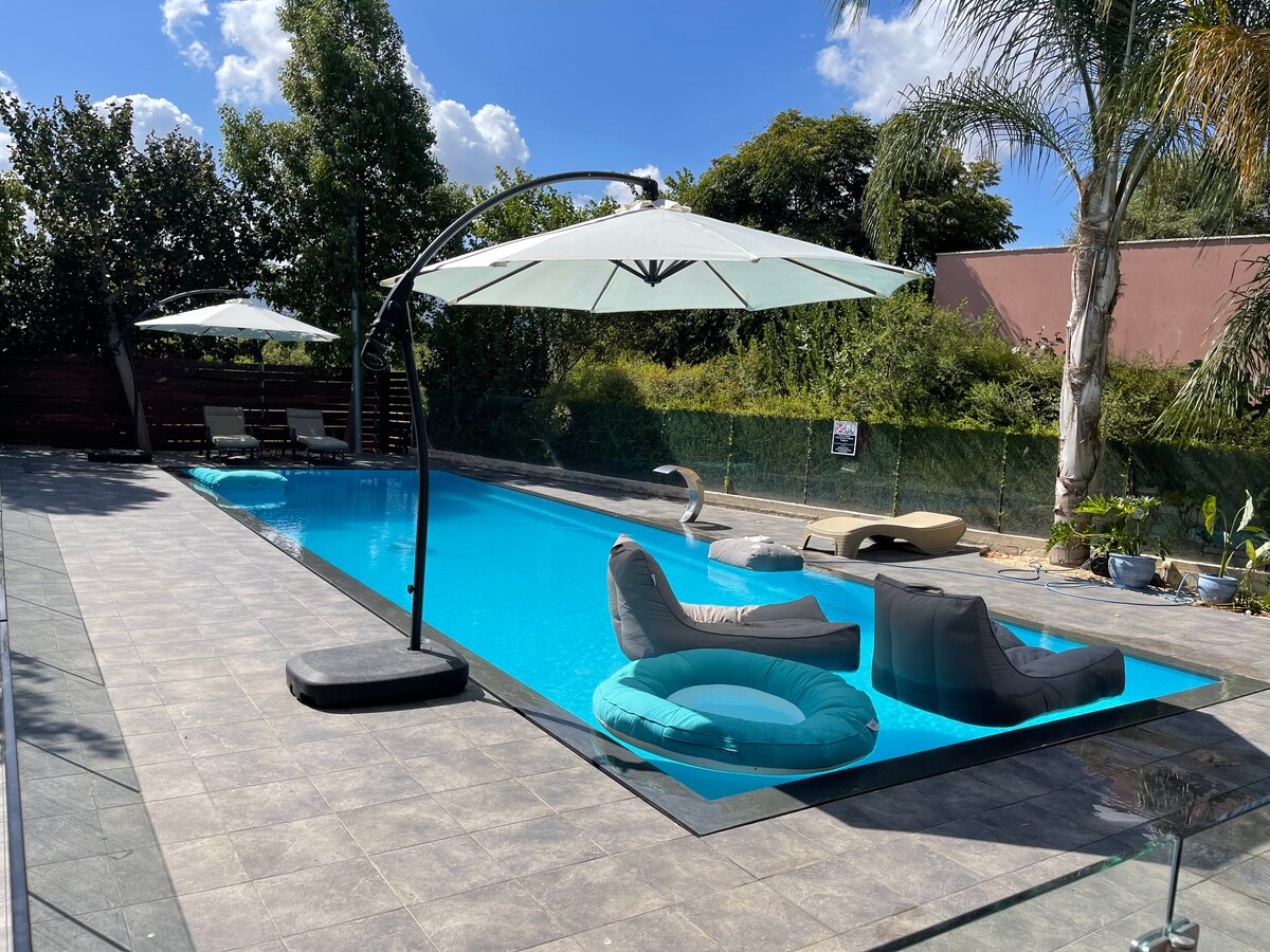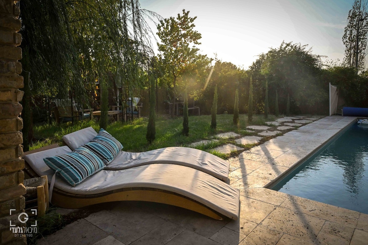 Winemaker 's Villa és a prop de la platja, apta per a famílies amb els millors senders per a bicicletes de terra d'Israel, així com rutes de senderisme, piscines de primavera naturals i vistes precioses. Amb cotxe estem a 20 minuts de la platja, a 10 minuts de l'estació de tren i a 28 minuts del centre de Tel-Aviv (en tren des de Binyamina). És el lloc perfecte per gaudir d'unes vacances reals a la natura, fer activitats a l'aire lliure amb la família i relaxar-se al jardí amb una copa de vi. La nostra unitat inclou un trampolí.