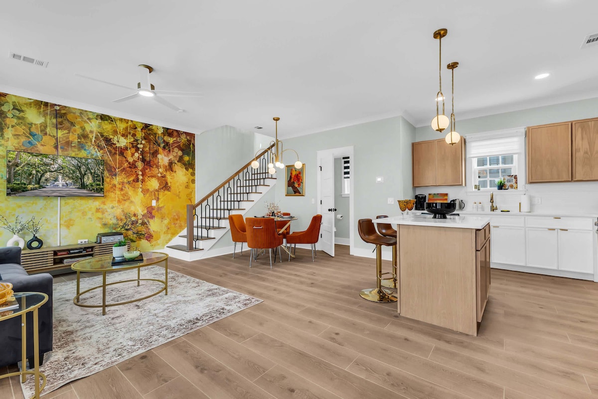 Sense cap dubte, la millor ubicació de Savannah: aquesta casa de disseny es troba al passeig del riu, a la nova urbanització Eastern Wharf. Camina fins al barri històric, explora les botigues i els restaurants propers o dirigeix-te a l'illa de Tybee, a només 15 milles, per gaudir d'un dia a la platja. Al vespre, gaudeix d'unes vistes inigualables de l'horitzó amb un còctel al Bar Julian, a pocs passos de l'hotel Thompson. Amb una decoració elegant i aparcament fora del carrer, aquest allotjament és el refugi perfecte a Savannah.