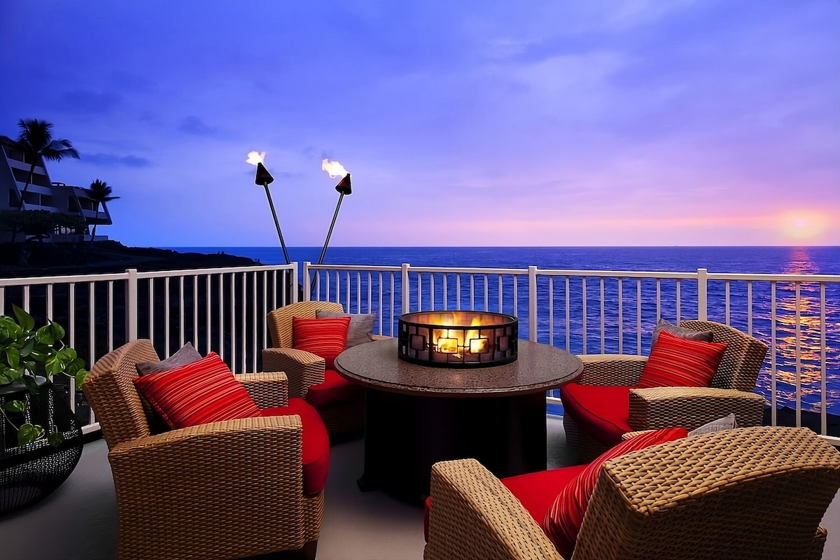 Situada a les roques de lava de la costa de Kona, aquesta propietat a primera línia de mar ofereix una escapada plena d'acció enmig de les vistes del Pacífic i les muntanyes Mauna. T'espera una autèntica experiència hawaiana: a pocs minuts de l'allotjament, els hostes poden participar en el Haleo Luau, visitar el Parc Històric Nacional Kaloko-Honokohau o relaxar-se a la sorra de Keauhou Bay Beach. Tant si estàs de visita per a una escapada romàntica o per a unes vacances en família activa, hi ha moltes coses per viure a l'illa gran!