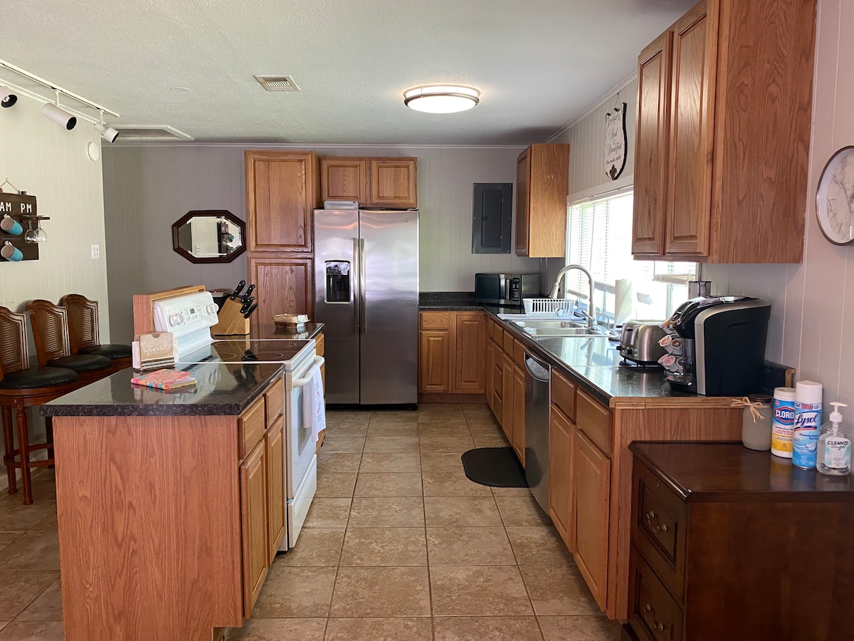 Aquesta casa d'hostes de 2 dormitoris i 1 bany moblada i espaiosa de 1500 peus quadrats en una finca boscosa privada d'11 hectàrees t'ofereix els serveis que t'agraden mentre estàs fora de casa. Inclou cuina completa, bugaderia, pati privat, menjador i sala d'estar a prop del centre de Ruston. Tant si t'allotges per assistir a un partit com si visites amics, gaudiràs de la comoditat i la comoditat que no pots trobar quan t'allotgis en un hotel. Acceptem animals de companyia i seguim totes les indicacions per gaudir d'un allotjament segur i net.