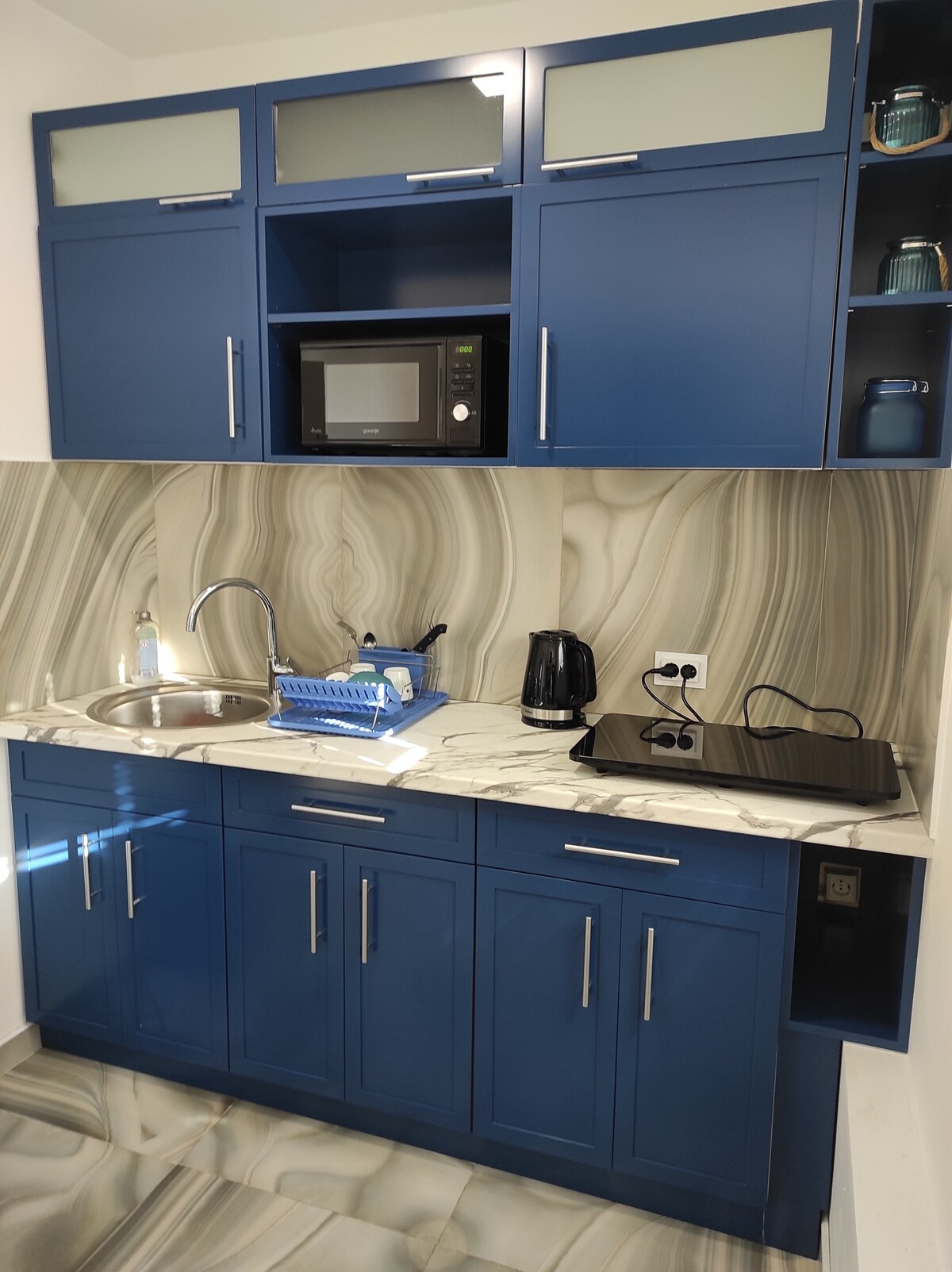 Situat a 50m de la Porta Alta, l'apartament forma part d'una casa nova. Disposa d'una gran sala d'estar amb balcó que dóna al llac d'Ohrid, 2 habitacions - una amb 3 llits (1 doble i 1 individual) amb balcó i una habitació amb 2 llits individuals, i 1 bany. Totalment equipat amb cuina, zona d'estar, rentadora, pantalla plana i wifi ràpid. A prop de l'apartament hi ha places d'aparcament gratuïtes. L'aeroport de Sant Pau apòstol d'Orhid és a 10 km amb cotxe.