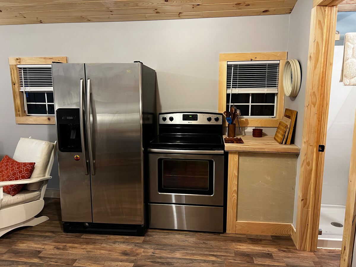 Et donem la benvinguda a Hideaway Cabin, on podràs relaxar-te en l'abraçada de la natura. Aquí pots crisquejar els teus preferits a la graella, descansar a les cadires Adirondack al balcó o simplement relaxar-te a l'interior. Vine al vespre, reuneix-te al costat de la llar de foc al porxo per veure ballar les llebres o relaxar-te a la banyera d'hidromassatge del porxo del darrere. És la barreja ideal de serenitat natural i comoditat familiar. A l'hivern, acollir-te al costat de la estufa de llenya a la sala d'estar i posa't al dia amb els teus programes de televisió preferits.