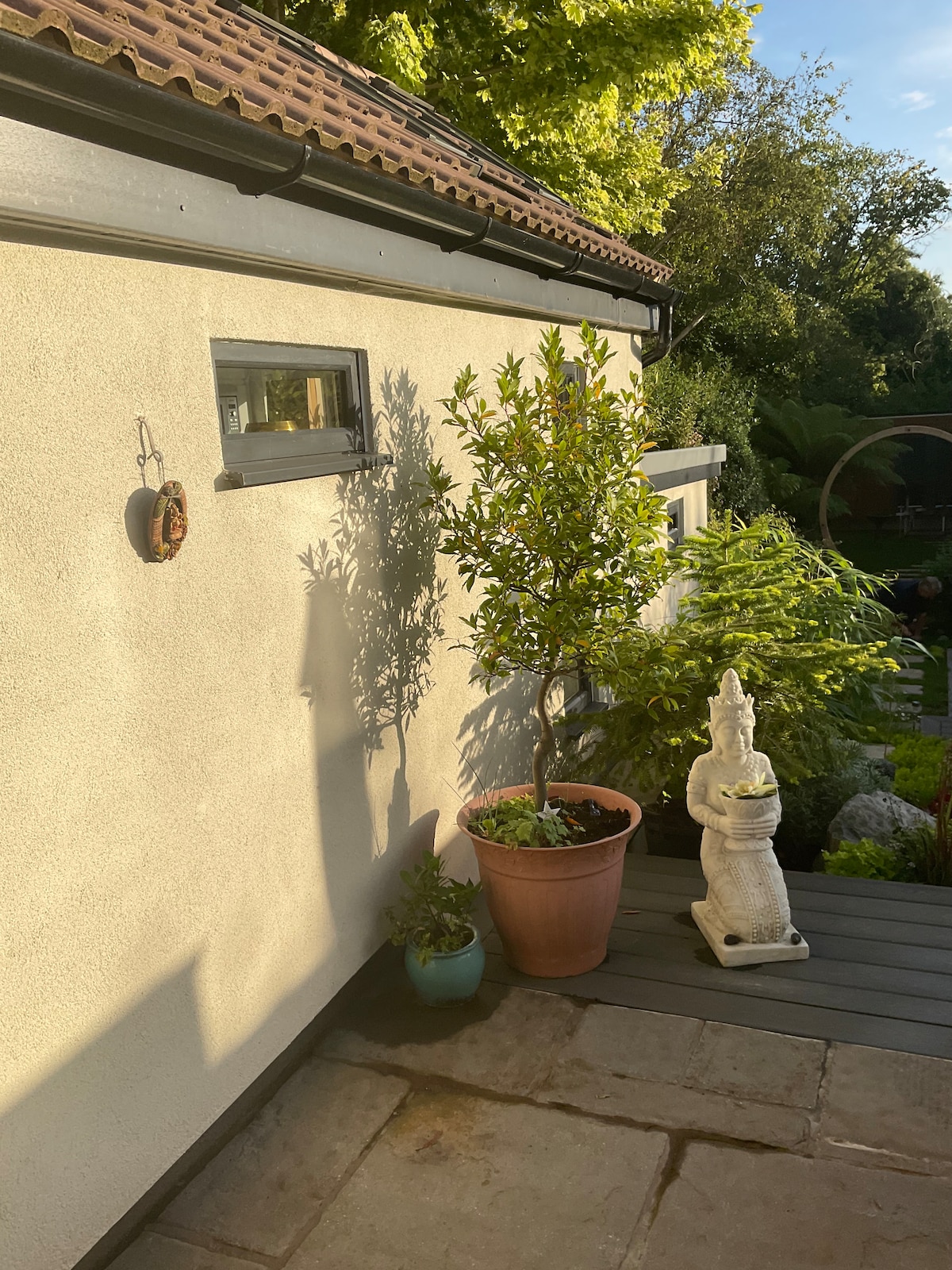 In Backwell, a 20-min drive from Bristol Airport, relax in the quiet garden room, a contemporary self-contained double bedroom with an ensuite wet room. Arrive to chocolate and a glass of wine, maybe on the terrace. There's juice, fruit and a cereal bar as well as tea or Dolce Gusto hot chocolate, cappucino or Americano. Please let me know of any allergies or intolerances. The Rising Sun is a short walk away and provides great food and drinks all day. Heaven Coffee House is very near too.