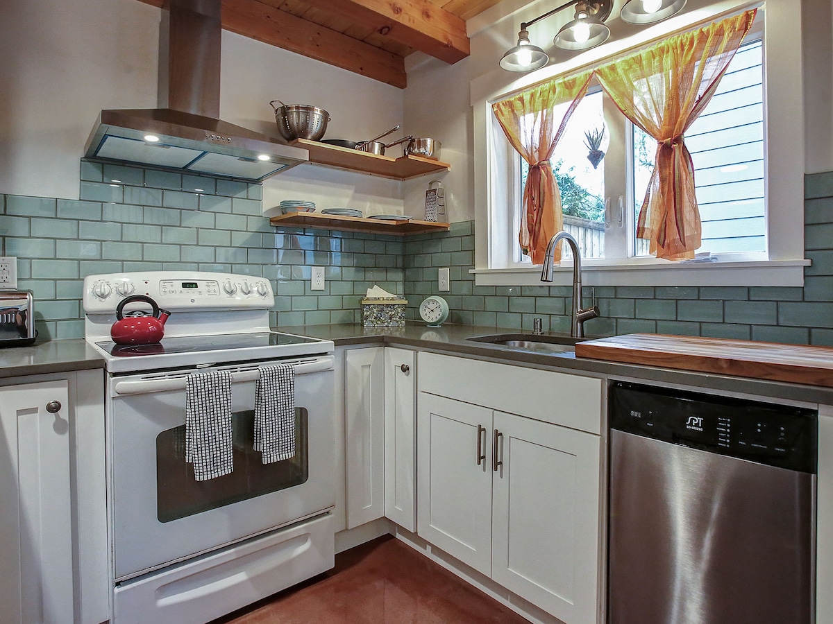 NE Portland Alberta Arts; casa d'hostes acollidora, amb capacitat per a 4 persones. Donem la benvinguda a TOTS els hostes! No cal fer tasques de neteja. Es permeten gossos per 50 $. Cuina completa, banyera/banyera; pati amb llar de foc. Sostre de la catedral, fusta a la vista, art local. Escala de caracol al loft amb llit de matrimoni ajustable; sofà llit còmode, capacitat per a dues persones; rentadora/assecadora; escriptori/espai de treball; cuina amb rentaplats, nevera, estris de cuina, forn, microones. Cafè, te, seltzer i aperitius subministrats. Ràdio Bluetooth, wifi, Ethernet cablejat, TV/Roku/Netflix.