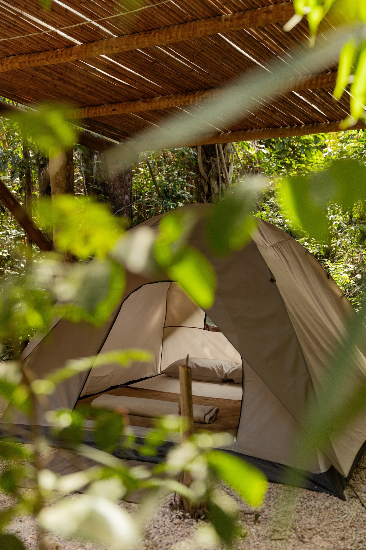 El glamping es troba en una zona del Bosc Atlàntic, on ens despertem amb el cant dels ocells i dormim amb la llum de les estrelles. El bosc està al voltant de la tenda de campanya i la platja a pocs minuts. El poble de Serra Grande té platges paradisíacas, així com diverses cascades. Gaudeix d'una experiència fora de la xarxa i tranquil·la; en un poble molt encantador; amb una natura exuberant, això és el que fa que l'estada sigui especial. El glamping es troba a 1,5 km de Vila de Serra Grande i a 3 km de la platja.