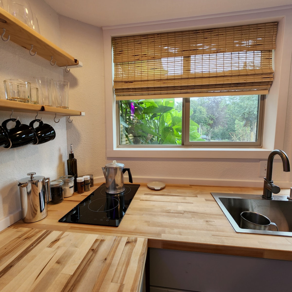 Imagina un refugi de muntanya amb una caseta privada en una muntanya lluny de tot submergit en vistes, arbres, natura, tot a 5 minuts de la ciutat, botigues, a 17 milles de l'entrada de Yosemite. Vistes espectaculars de les muntanyes de Sierra Nevada des de la coberta i dins de la caseta amb finestres de paret a paret que conviden a la vista. Gaudeix de les sortides de sol, les postes de sol, la natura, l'observació de les estrelles, els focs. La caseta ofereix una experiència única! Relaxa't, restableix i gaudeix de les vistes en aquest entorn tranquil i romàntic.