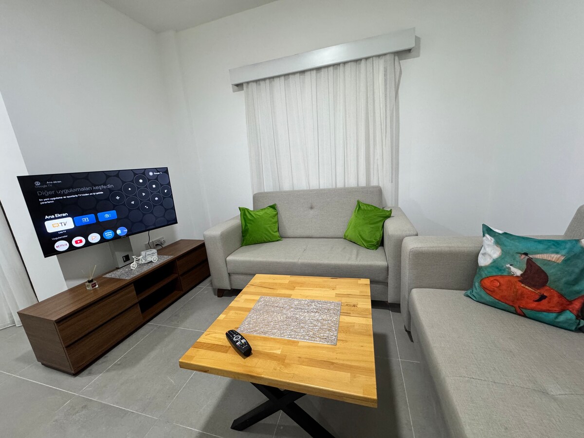 El nostre apartament estudi al popular Royal Life Residence es troba a la zona de la platja llarga d'İskele. El nostre estudi disposa de comoditats com una piscina, un parc aquàtic, un parc infantil i un bar. És a poca distància a peu de la platja, el supermercat, la farmàcia, la perruqueria, els restaurants i els bars. El nostre apartament disposa d'una cuina totalment equipada, un llit doble, un llit individual, una televisió intel·ligent (YouTube, Netflix, Prime TV), wifi gratuït, aire condicionat i mosquiteres a les finestres.