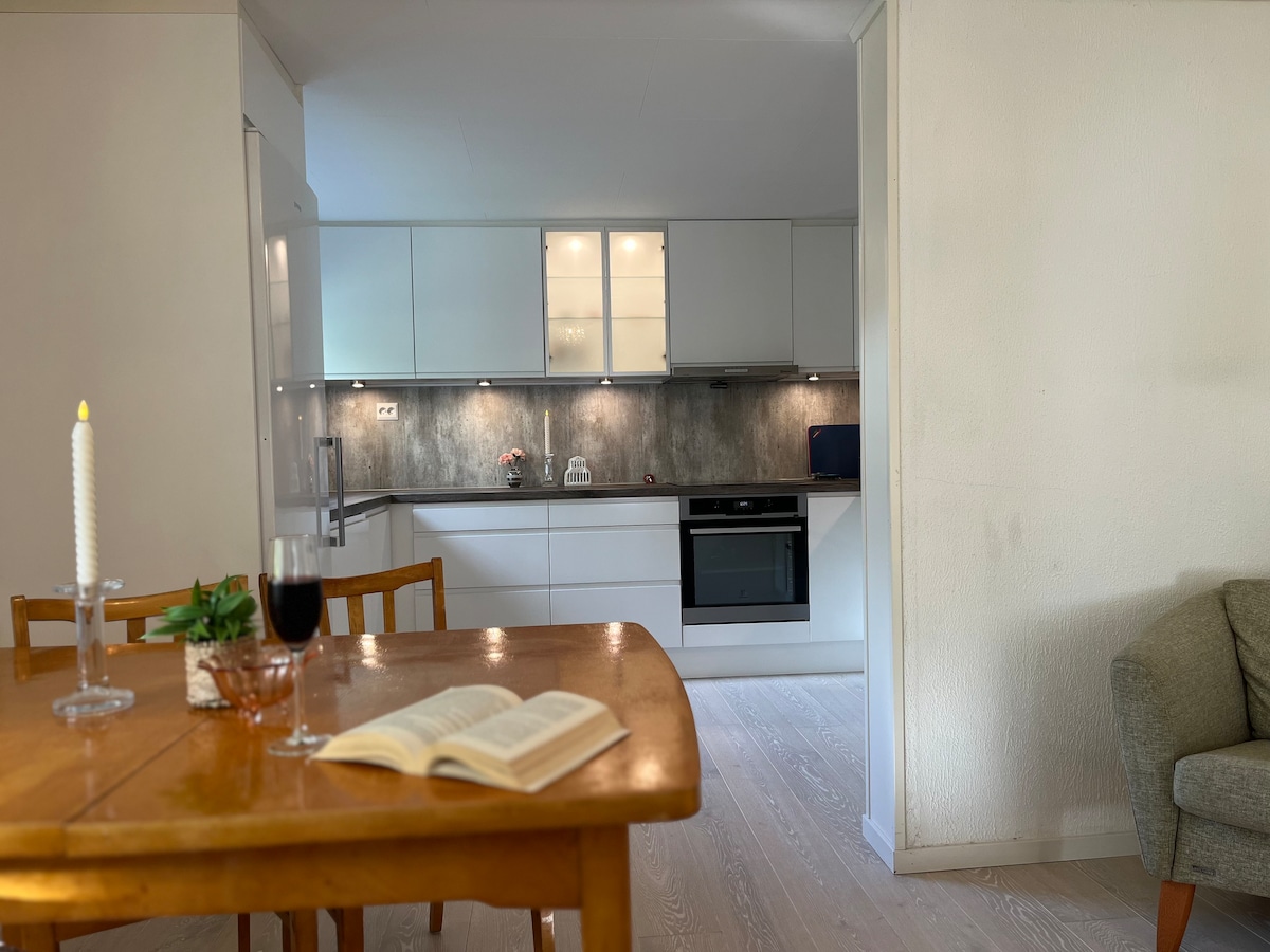 The apartment is on the second floor (about 60sqm) with its own entrance. Located 5 min from the airport, 10 min from city centre by taxi/car. It is a brand new apartment. Light colours and fresh scandinavian design. Seaside view from the living room window overlooking the fjord.