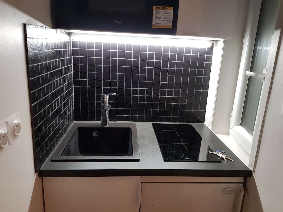 Al cor de París (Ht-Marais), petit estudi acollidor, romàntic i molt funcional de 16 m2, bastant còmode. Excel·lent ubicació: museus, restaurants, bars, compres. Arts et Métiers metro 150m (línies 3 i 11). línies 4, 5, 8, 9 a uns minuts. Al cor de París, un petit estudi acollidor i romàntic molt funcional (170 metres quadrats) i absolutament còmode. Amb una ubicació ideal: museus, restaurants, bars, compres. Estació de metro "Arts et Métiers" molt tancada (línies 3 i 11). Línies 4, 5, 8, 9 minuts.