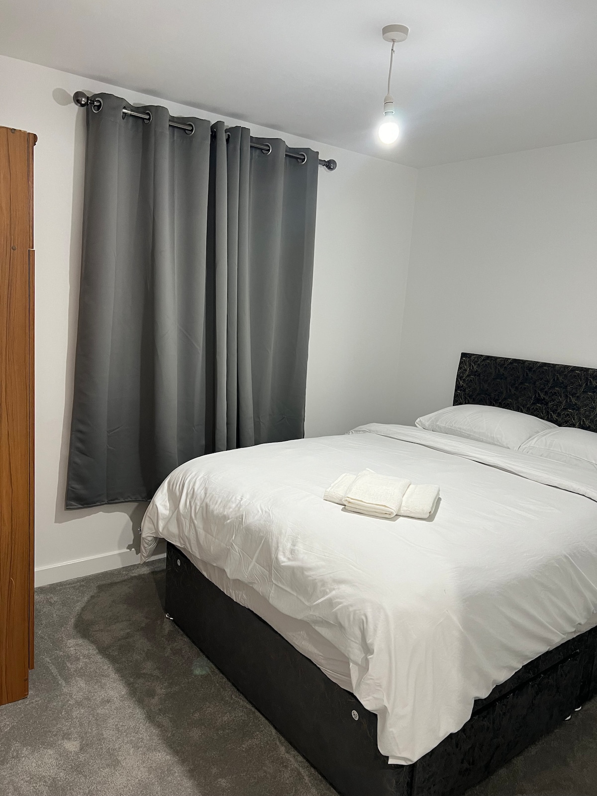 El pis està unit a la nostra casa per sobre del garatge i té la seva pròpia porta principal, un gran espai amb un llit de mida king i bany propi. Construït el 2016, molt agradable i càlid. La cuina té nevera, congelador, microones, bullidor, torradora, rentadora, forn i vitroceràmica Sky Tv, Disney, Netflix, Wi-Fi 300mb+. escriptori. Si es reserva amb 2 dies d'antelació, oferim cereals, pa, mantega, llet, te i cafè. L'aparcament és privat i està situat al costat de la porta d'entrada. Hi ha un punt de càrrega per a vehicles elèctrics. Podem afegir un llit supletori per 30 lliures.