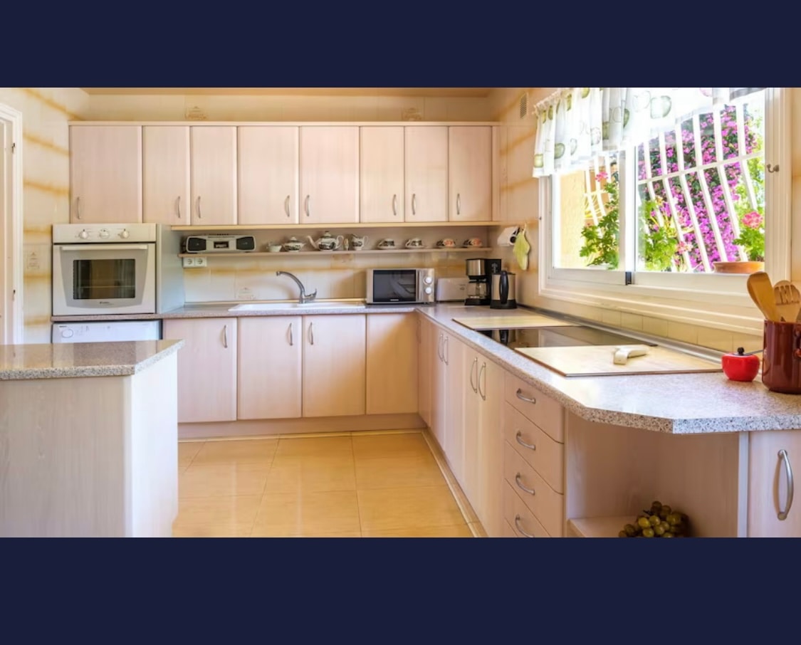 Piscina privada: gaudeix d'una estada relaxant a la nostra acollidora casa d'estil mediterrani. Situat en una zona tranquil·la i assolellada. Totes les habitacions són espaioses i tenen llum natural i vistes panoràmiques al mar i a les muntanyes. La casa està dissenyada per al descans i la comoditat, amb espais ben distribuïts, aire condicionat i detalls naturals que et conviden a desconnectar. Piscina privada perfecta per refrescar-se i amb espai suficient perquè el teu animal de companyia també gaudeixi.